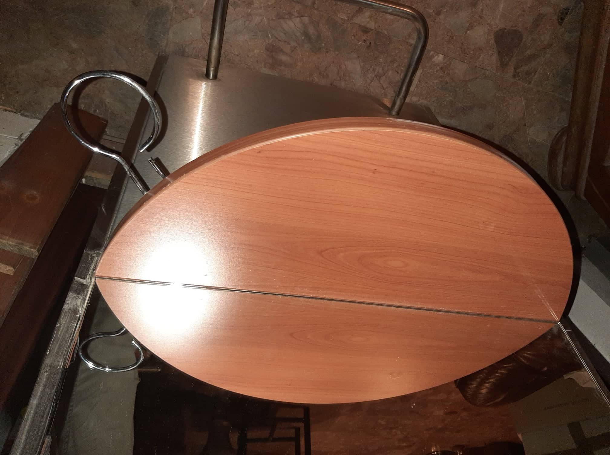 Kadeřnická obsluha - zrcadlo Frederic moréno, nerez, opěrka nohou, držák na fen/vyklápěcí-lze schovat, 2x zásuvka ...2kusy